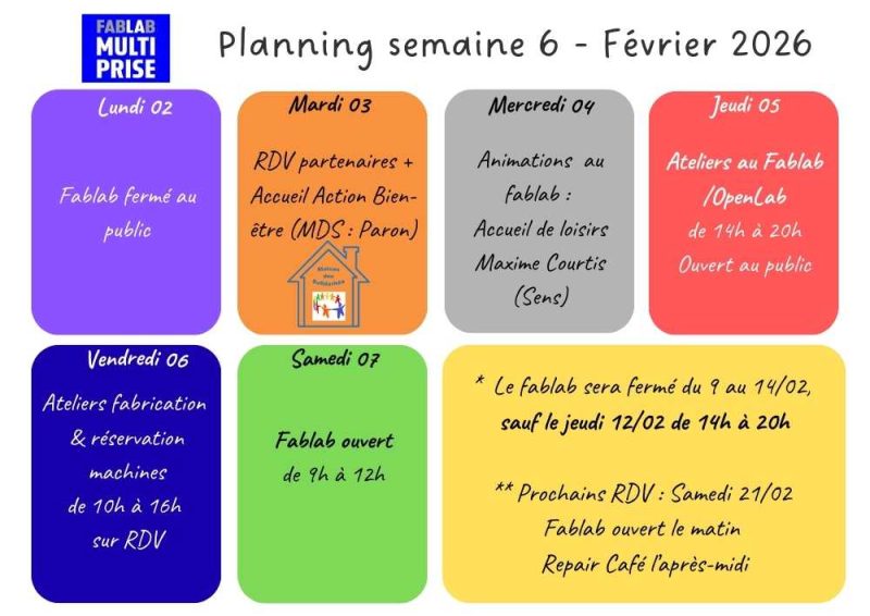 Le FabLab La Multiprise est un espace collaboratif de partage de compétences et de matériels, situé à Paron. Notre fablab est équipé d\'outils traditionnels (fer à souder, machines à coudre, …) et d\'outils numériques (imprimante 3D, brodeuse, graveur laser, …). C\'est un lieu d\'apprentissage et d\'expérimentation pour apprendre, créer, transformer, réparer et partager !